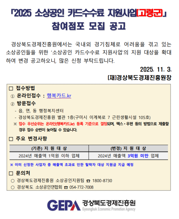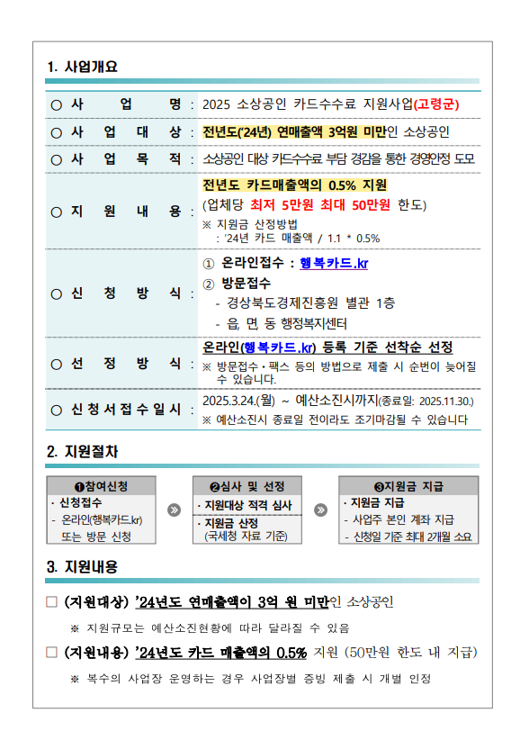【2025 고령군 소상공인 카드수수료 지원】신청방법·대상·변경내용 총정리!