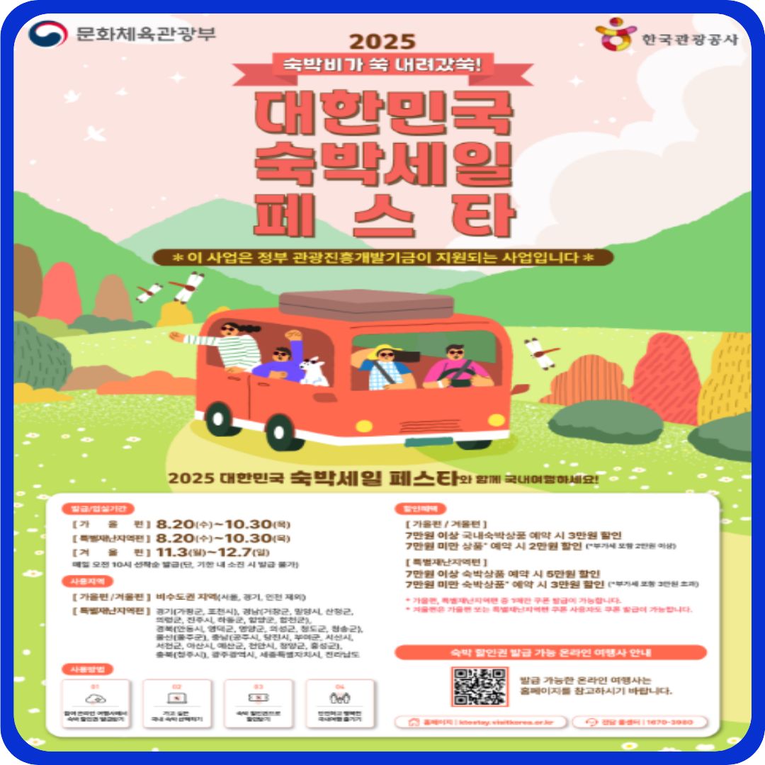 국내 여행 트렌드가 다시 뜨거워지면서 정부가 지원하는 대한민국 숙박세일 페스타(이하 숙박세일페스타)가 2025년에도 큰 화제를 모으고 있습니다.