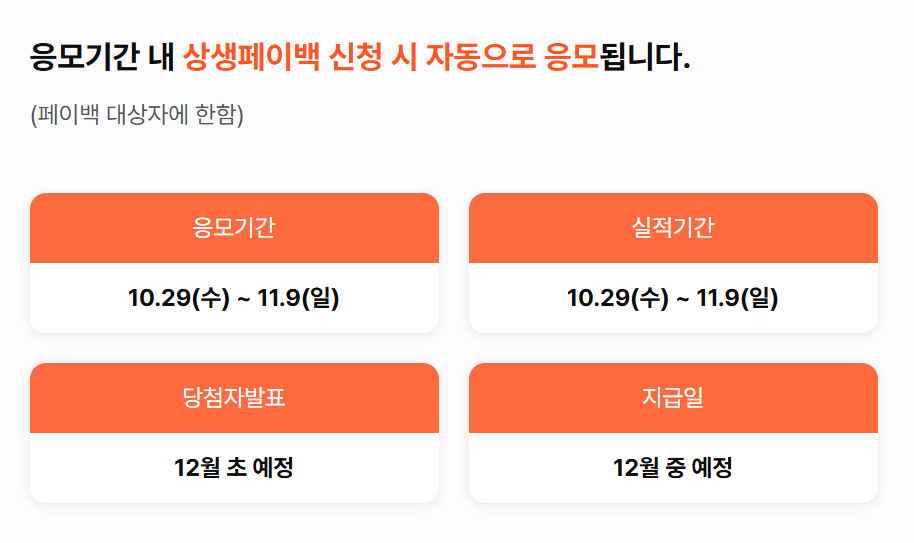 - 응모 방식: 상생페이백 홈페이지에서 자동 응모